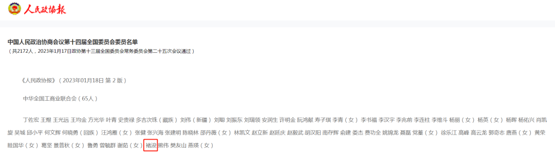 會議經過表決,通過了政協(xié)第十四屆全國委員會參加單位、委員名額和委員人選名單。煌上煌董事長褚浚作為中華全國工商業(yè)聯(lián)合會代表榮譽當選中國人民政治協(xié)商會議第十四屆全國委員會委員。