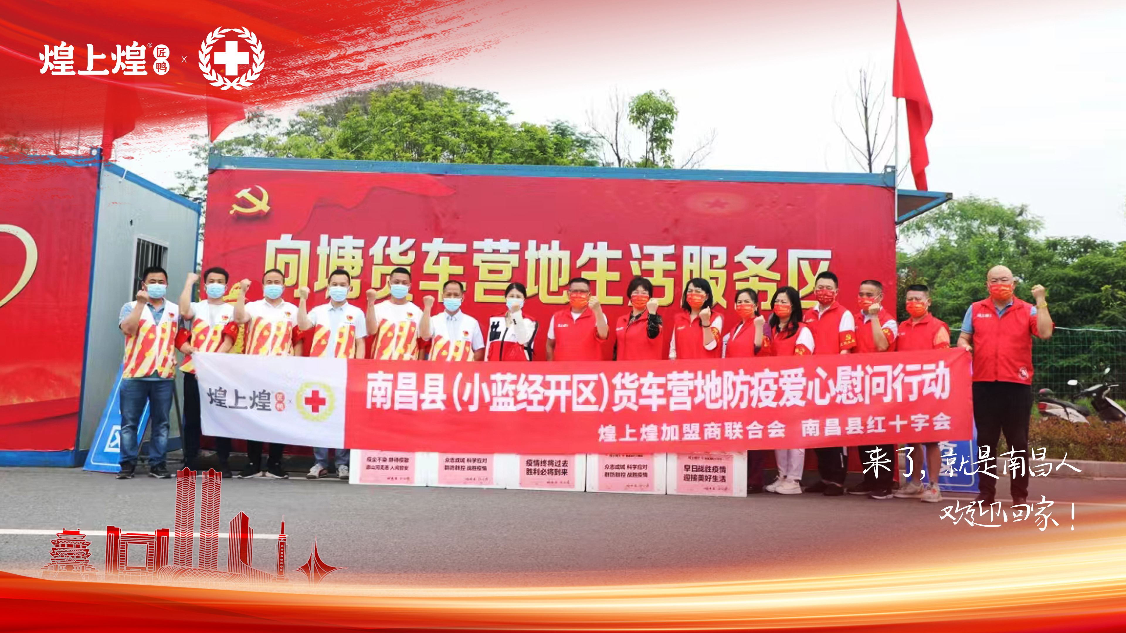 5月7日,在江西省南昌縣(小藍(lán)經(jīng)開區(qū))各個(gè)貨車營地,煌上煌加盟商聯(lián)合會(huì)攜手南昌縣紅十字會(huì)給駐守營地的工作人員、志愿者,以及暫時(shí)停留在南昌等待核酸檢測結(jié)果的司機(jī)們送上煌味能量。