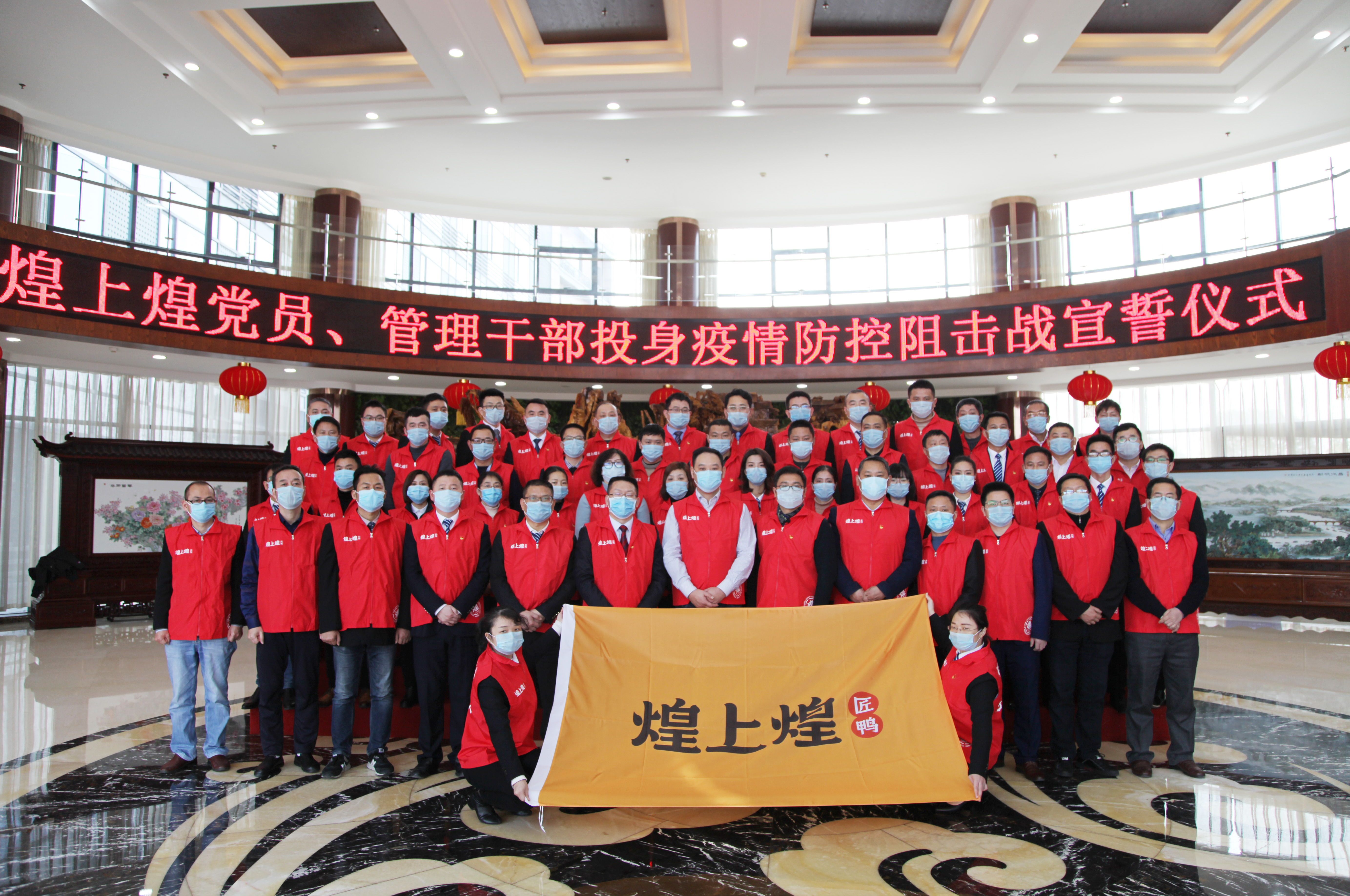當(dāng)前,新型冠狀病毒感染的肺炎疫情防控工作正處于關(guān)鍵時期。為堅決貫徹落實習(xí)近平總書記重要指示精神和黨中央的通知精神,讓黨旗在第一線高高飄揚,為打贏疫情防控阻擊戰(zhàn)提供堅強政治保證,1月31日下午,煌上煌集團黨委舉行堅守崗位的公司黨員、管理干部投身疫情防控阻擊戰(zhàn)宣誓儀式。