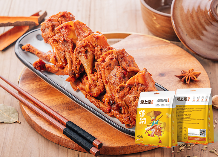 精選規(guī)格統(tǒng)一的鴨鎖骨,濃湯鹵制,使用多種調味料、紅油拌制調理,...