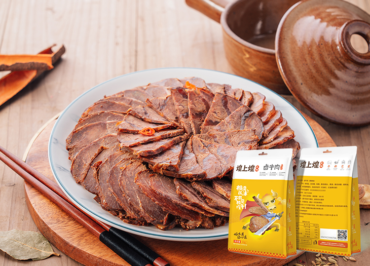 產(chǎn)品介紹:精選牛腿腱子肉,包膜完整,肌肉纖維質(zhì)堅(jiān)而細(xì),肌內(nèi)結(jié)締組織豐富具有彈性。采用新鮮牛骨和20多種香料熬制醬湯醬制,濃郁的醬香味里透發(fā)出牛肉固有的香氣。產(chǎn)品含水分量低,食之越嚼越香,食后唇齒留香就就不去。醬鹵牛腱蛋白質(zhì)含量,氨基酸組成比豬肉更接近人體的需要,具有提高機(jī)體抗病能力,強(qiáng)筋壯骨,滋養(yǎng)脾胃的作用。